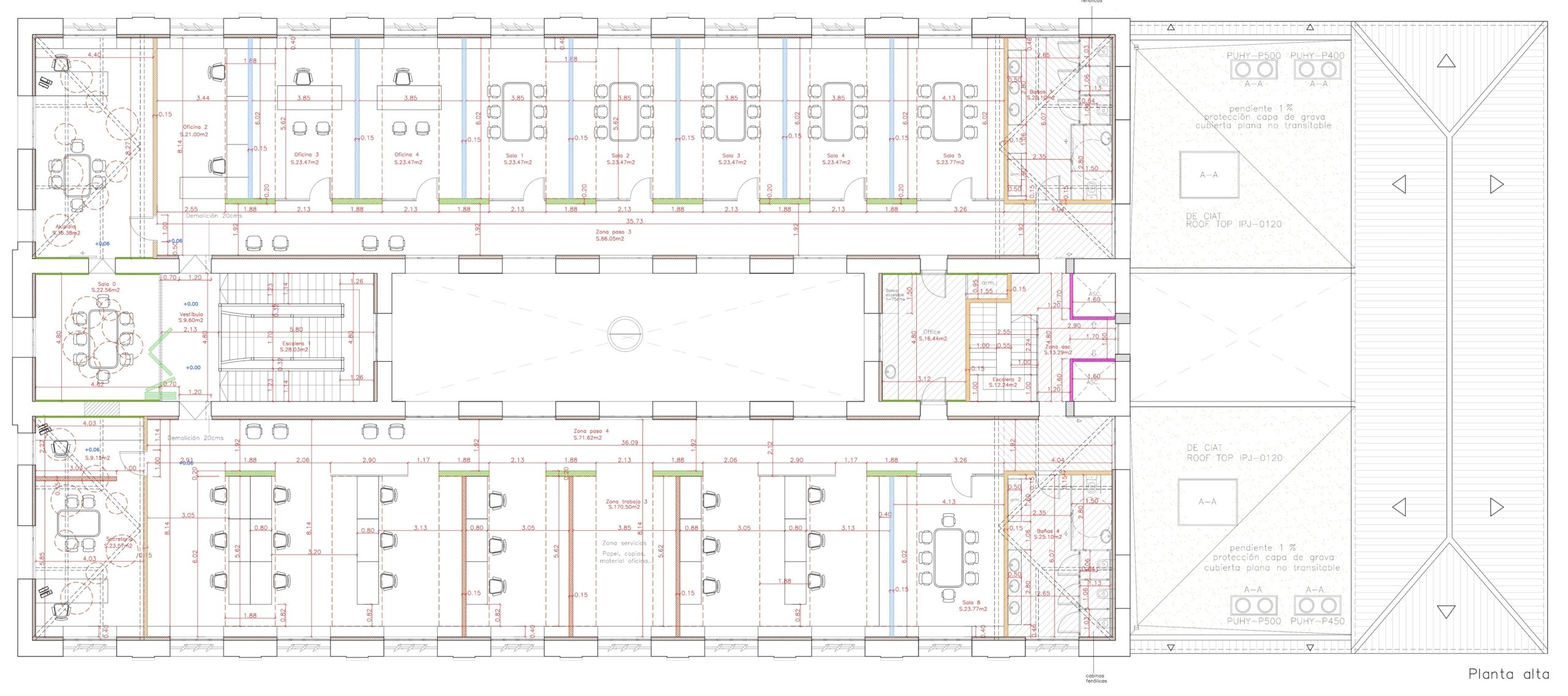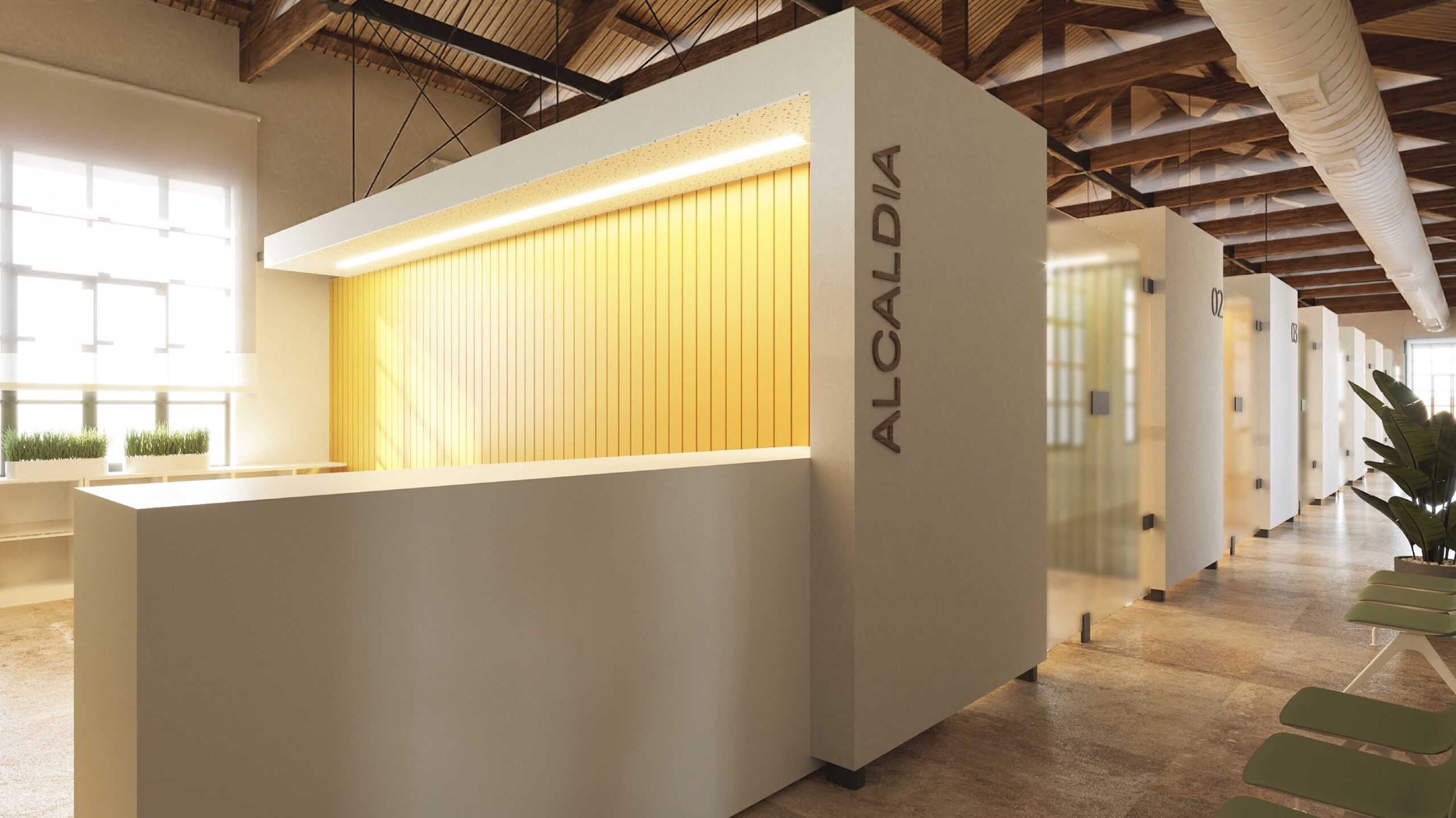 A la planta superior es trobaran els despatxos d’Alcaldia i Secretaria, la zona de serveis amb material de papereria i altres zones de treball i despatxos.
