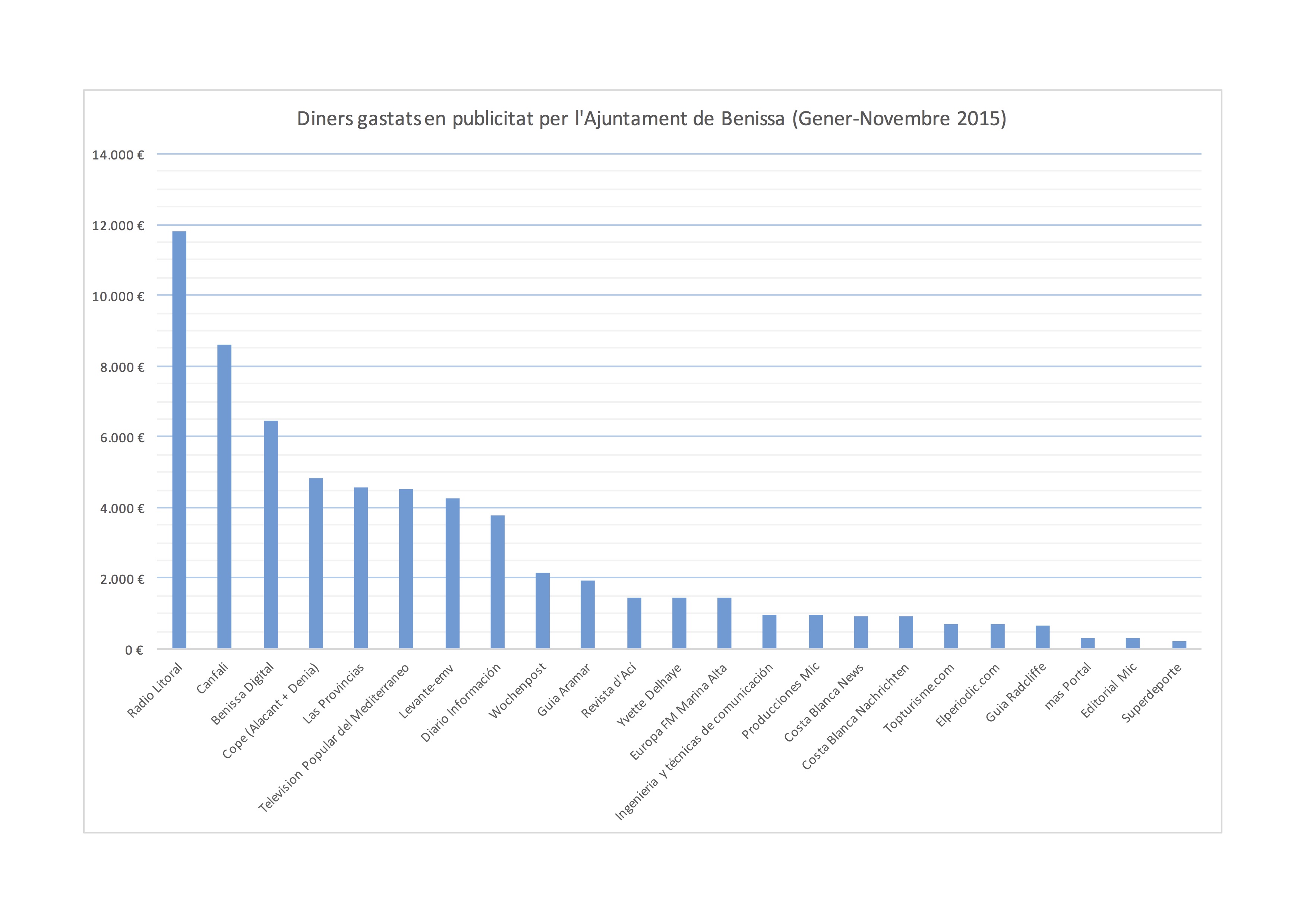 Els únics mitjans de comunicació que no han format part de la publicitat institucional de l’Ajuntament de Benissa han sigut el diari electrònic La Marina Plaza, Infobenissa i l’edició a Alacant del periòdic El Mundo, mitjans tradicionament més crítics amb les actuacions de l’equip de govern de l’Ajuntament de Benissa.
