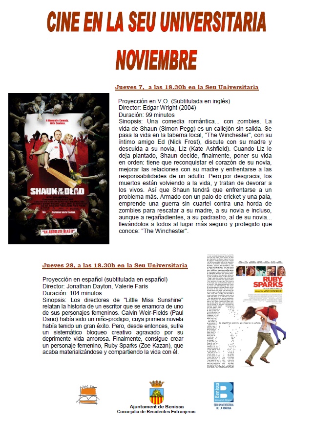 La primera a projectar-se serà “Zombies Party”, concretament dijous que ve, dia 7 de novembre. Es tracta d’una comèdia romàntica amb zombies inclosos, dirigida pel director de cinema Edgar Wright. Aquesta projecció es farà en versió original, Anglés, i subtitulada en aquest mateix idioma.