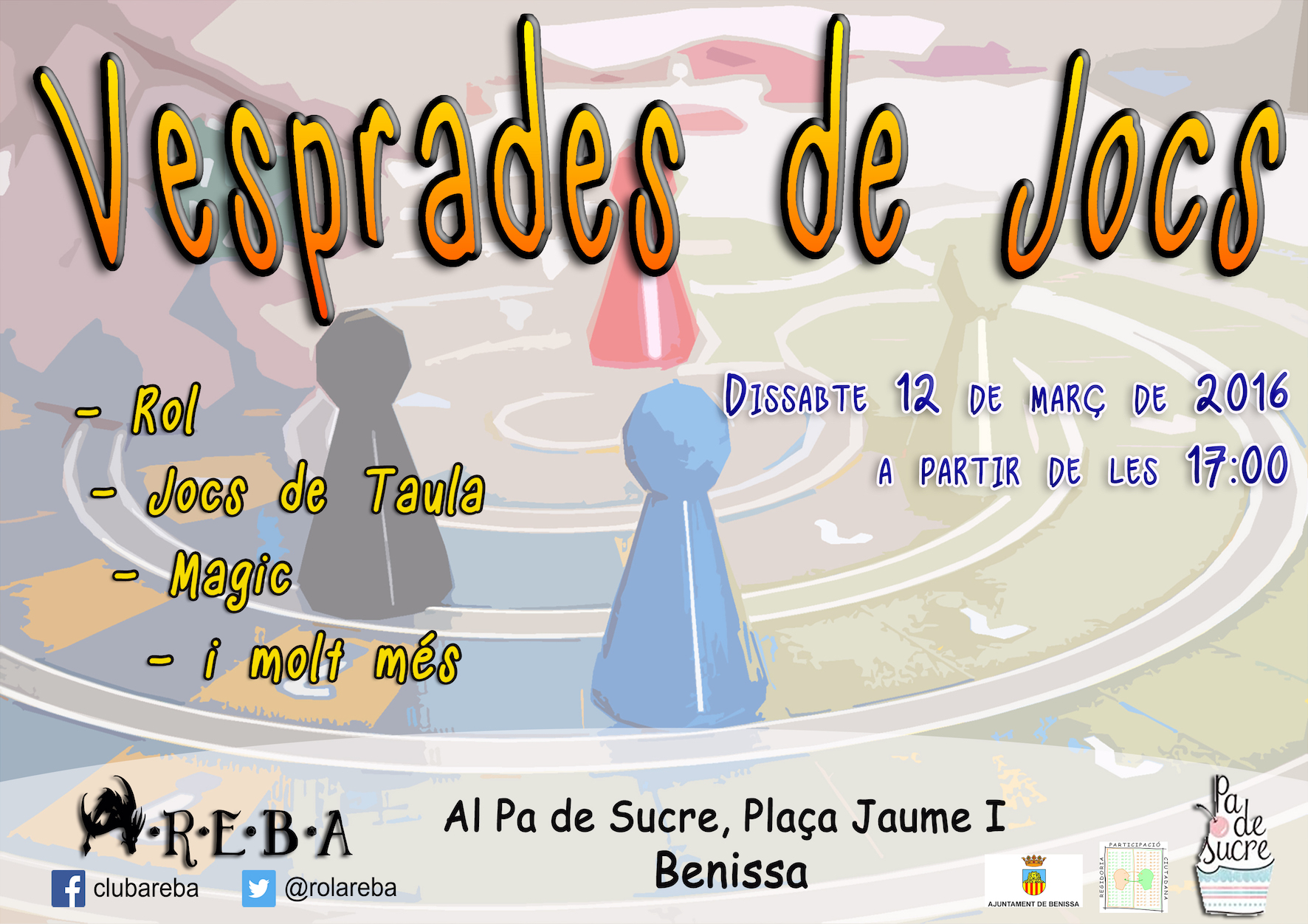 L’associació AREBA (Associació de Rol i Estratègia de Benissa i Alacant) organitzarà unes vesprades de jocs de taula, rol, simulació i estratègia. L’esdeveniment es dirigeix a tots els públics.
