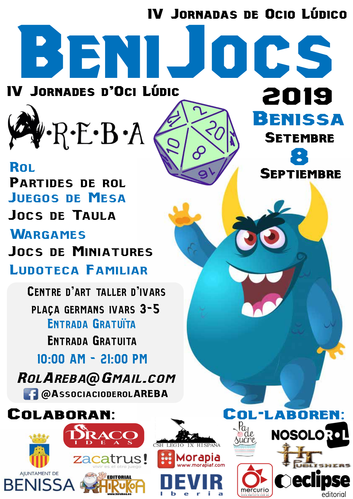L’associació AREBA (Associació de Rol i Estratègia de Benissa i Alacant) organitza les jornades de jocs de taula, rol, simulació i estratègia Benijocs 2019.