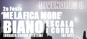 Per segona vegada l’Assemblea de Joves de Benissa organitza la festa “Me La Fica more”. Una festa dedicada a la cultura lliure, i un homenatge al grup de músics i amics que els han vist crèixer com a col·lectiu, Orxata Sound System.