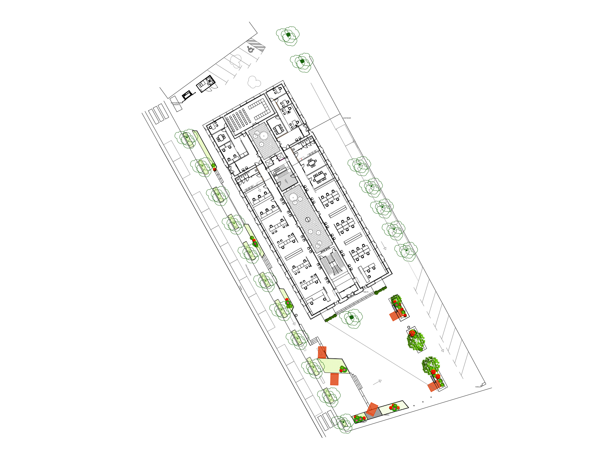 Plànol de la reforma exterior del nou Ajuntament de Benissa on s'observa la ubicació de les places d'aparcament