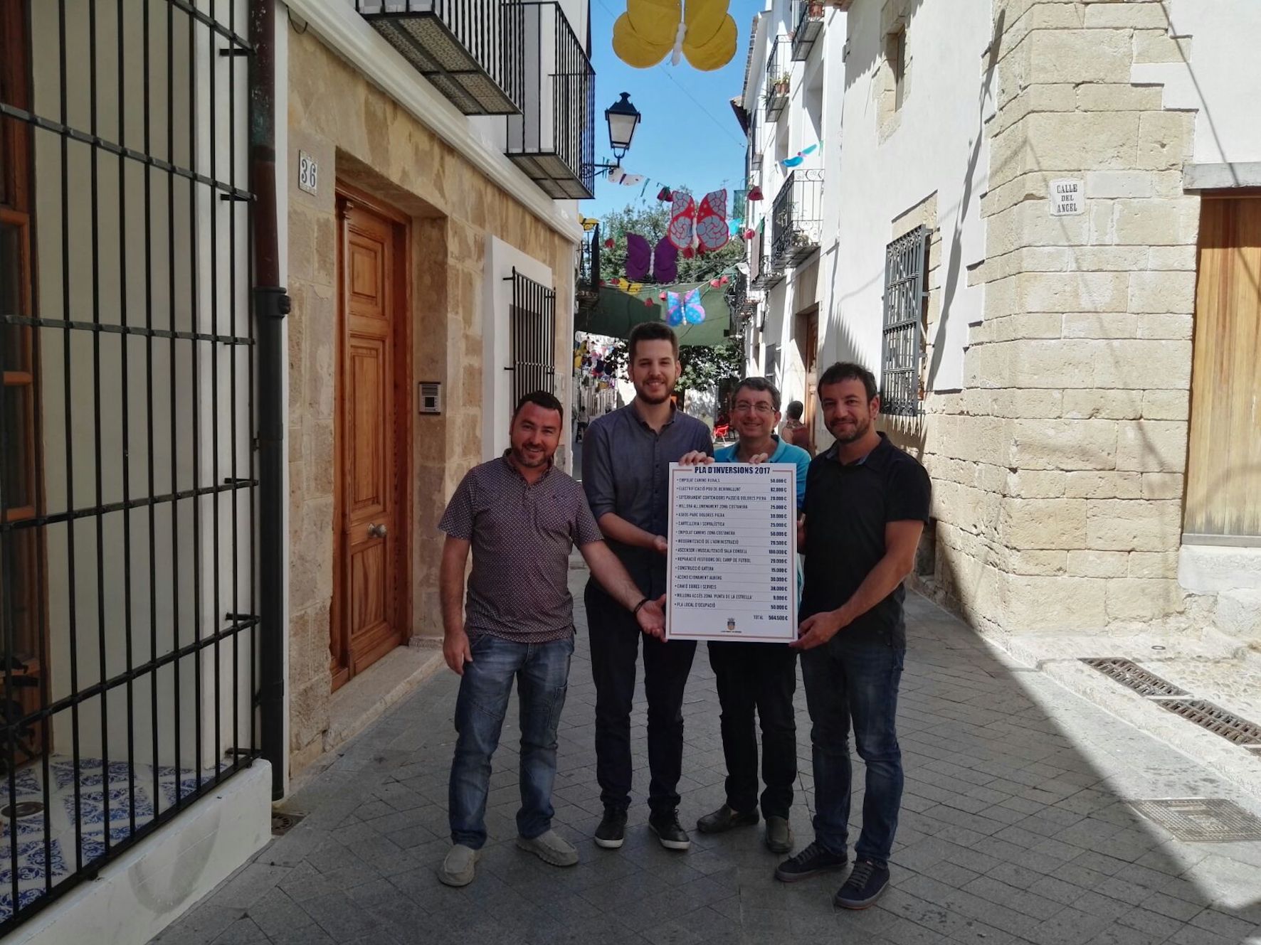 Fernando López Corsi, regidor d’Hisenda, Abel Cardona, batle de Benissa, Manuel Juan, portaveu de l’Equip de Govern, i Xavier Tro, regidor de Creama i Obres, entre altres àrees han presentat el Pla d’Inversions 2017 que duran endavant en les pròximes setmanes. Entre les principals propostes destaquen propostes de caràcter social i diverses infraestructures, pensades per a millorar la qualitat de vida de les persones de Benissa.
