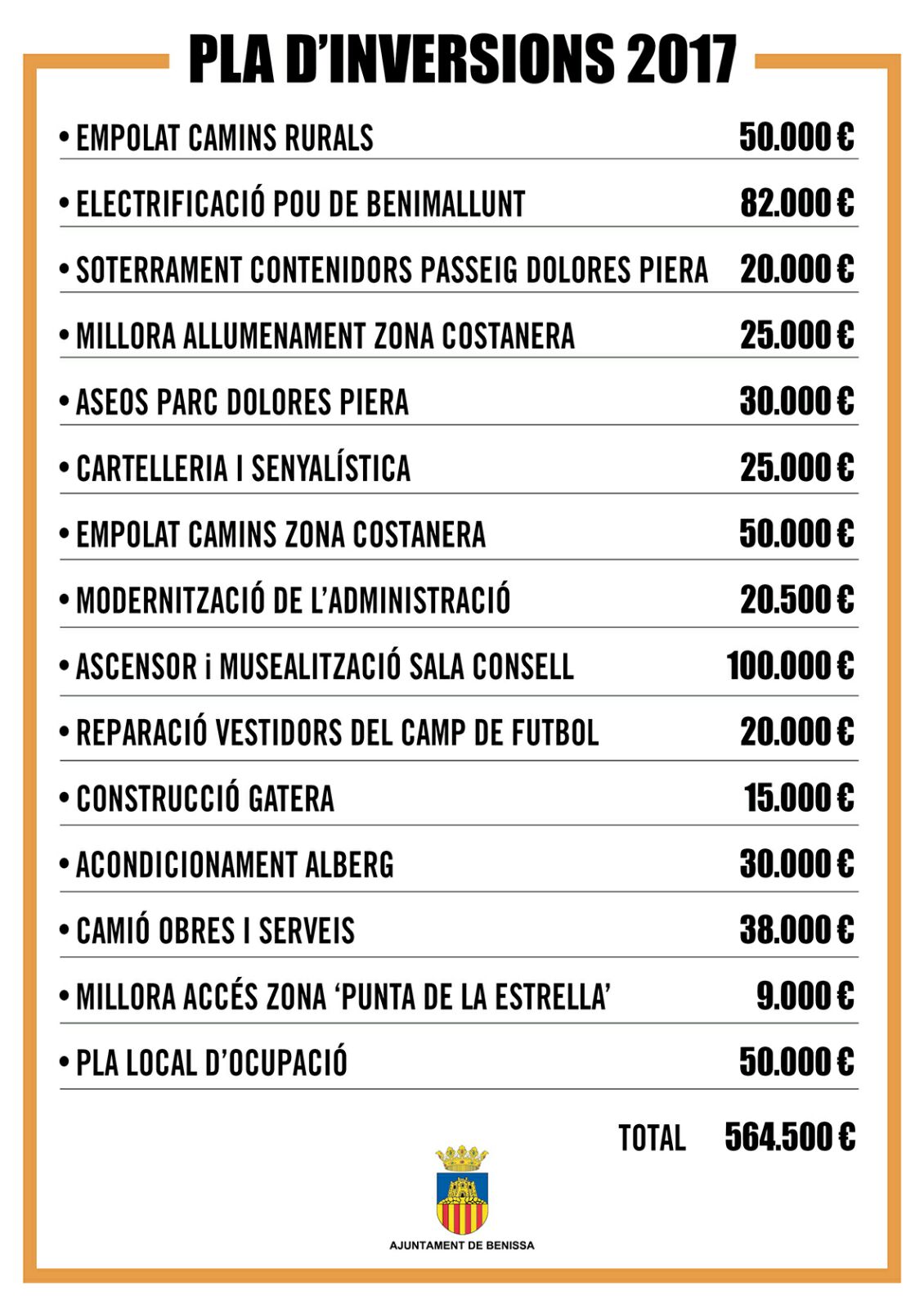 Presentació del Pla d’Inversions 2017 de l’Ajuntament de Benissa