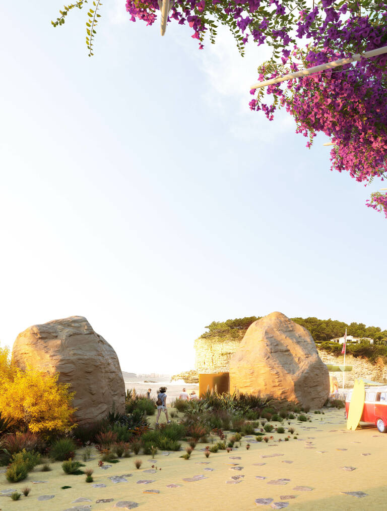 La proposta de Grupo Aranea genera un nou paisatge basat en les roques erosionades de la platja