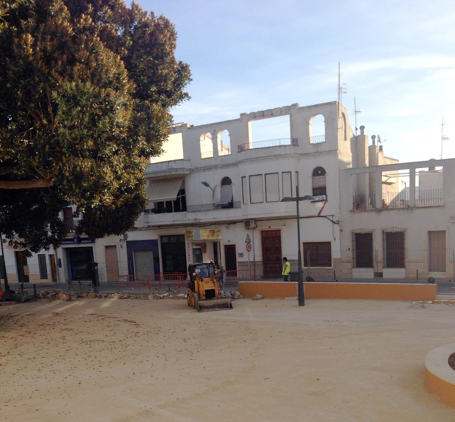La Glorieta Dolores Piera de Benissa ha aparegut este matí rodejada de tanques per l’inici de les obres de remodelació. A dins, una xicoteta retroexcavadora anava picant el mur que separa la glorieta del carrer Palmera i les escales que baixen des del carrer Fra Humilde Soria.
