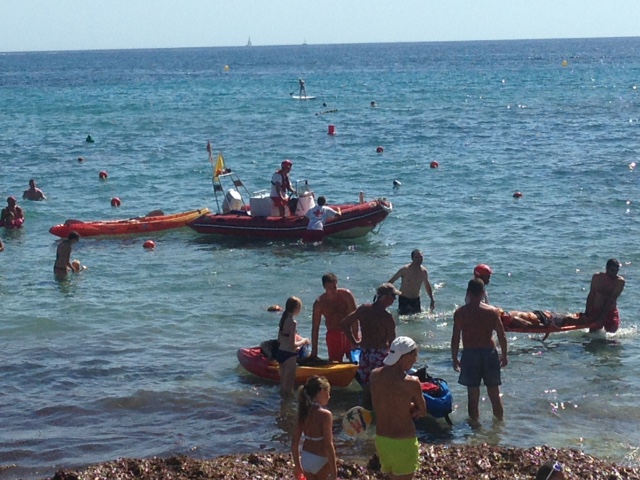 Divendres passat, 28 d’agost, un grup d’efectius de Creu Roja van efectuar un simulacre de rescat a dos banyistes que van patir un accident en el mar quan practicaven un esport nàutic, a la platja de la Fustera de Benissa.