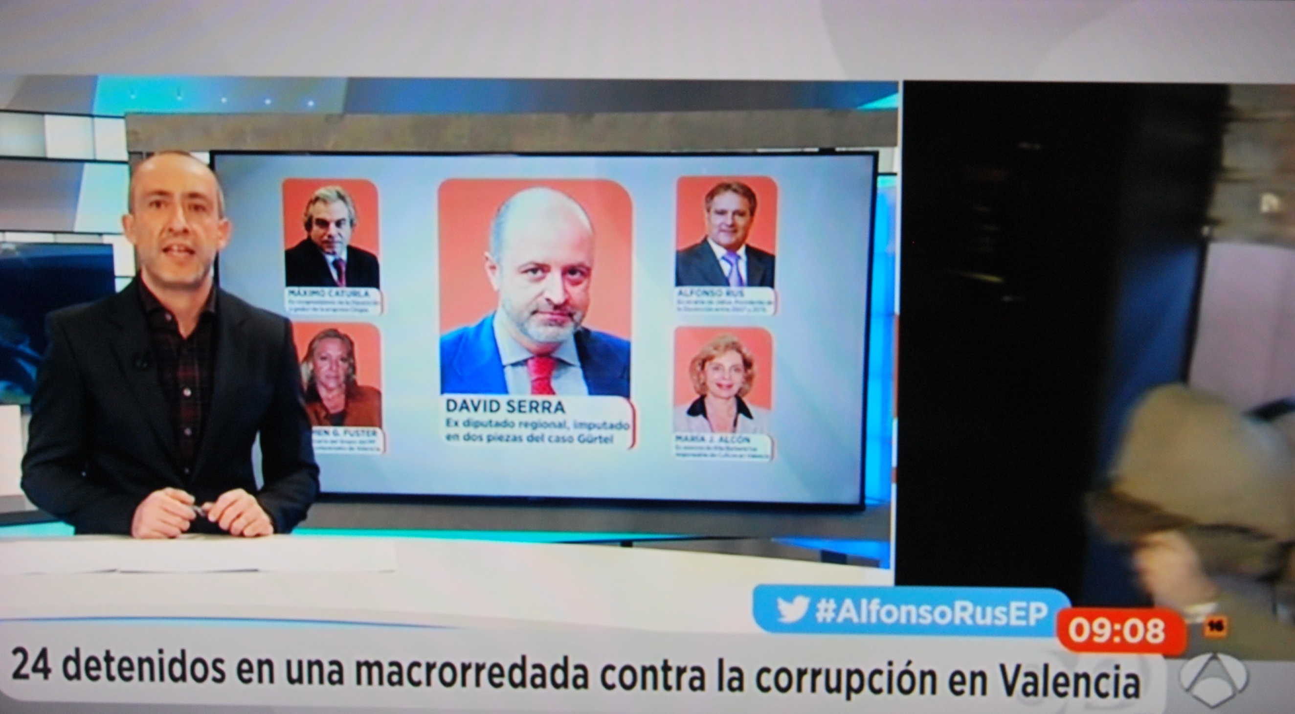 L’exdiputat benisser David Serra ha passat la nit al calabós, de la mateixa manera que la resta dels 24 detinguts en l’operació Taula, l’operació anticorrupció contra el Partit Popular de la Comunitat Valenciana. Segons publica el periòdic ABC, els implicats principals van ser traslladats al quarter de la Guàrdia Civil de Patraix, però per falta de calabossos, altres implicats van haver d’anar als quarters de Moncada i Alfafar, entre d’altres. Els detinguts passaran al llarg de hui a disposició del Jutjat d’Instrucció número 18 de València.