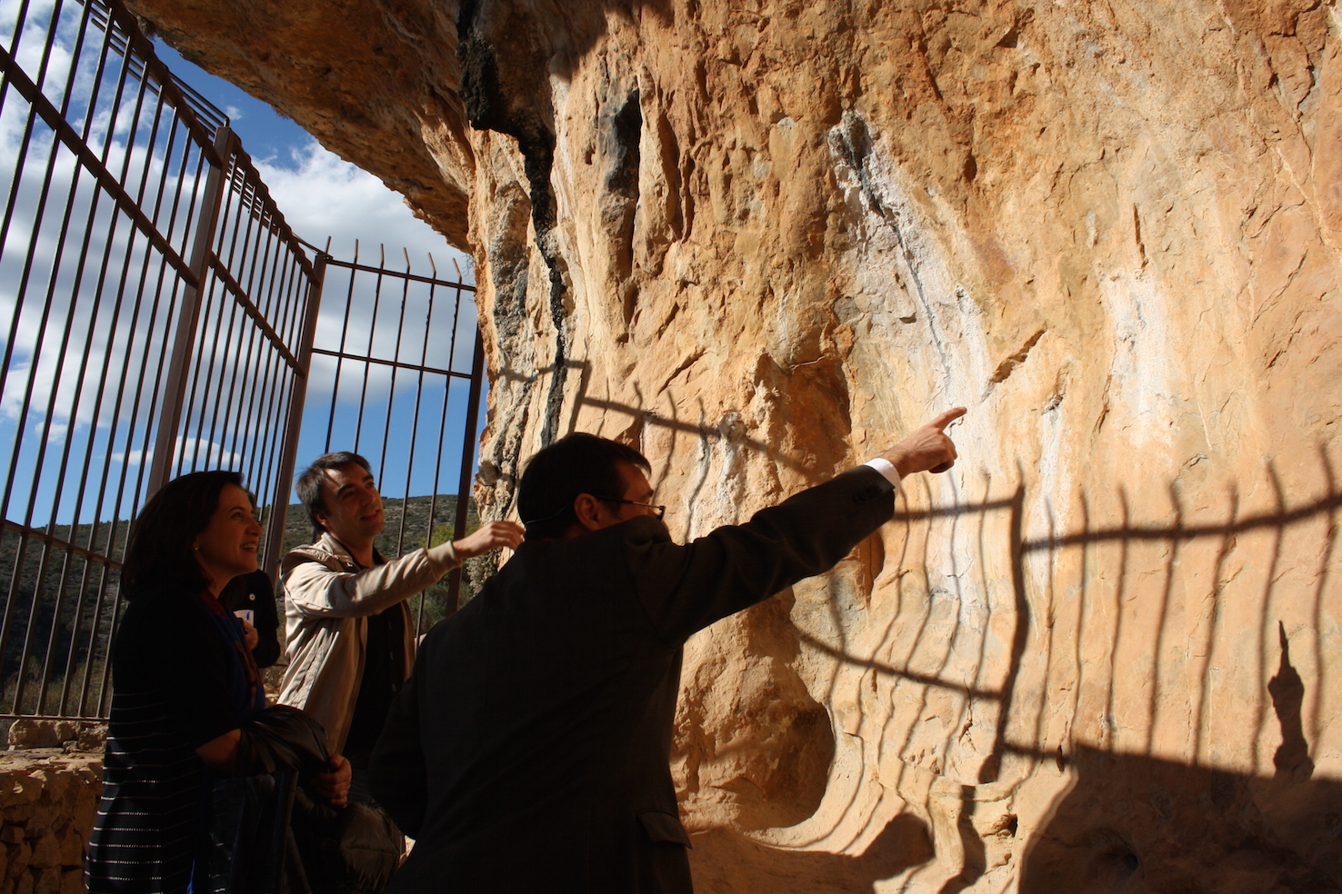 La Directora General de Cultura, Marta Alonso, va visitar el divendres pel matí les obres de restauració, difusió i posada en valor del conjunt patrimonial de l’Abric de Pinos. Una actuació que forma part d’un projecte que va començar l’any 2009 amb els treballs de restauració del conjunt d’art rupestre, la prospecció arqueològica de la superfície de l’abric i de la zona adjacent i la seua posada en valor, i que ara culmina amb la segona fase del projecte consistent en la restauració d’un refugi ramader realitzat en pedra seca i que per la seua situació posava en perill el conjunt de pintures. Una actuació que ha tingut un cost de 17.000 euros, finançats entre la Regidoria de Patrimoni de l’Ajuntament i la Conselleria de Cultura de la Generalitat Valenciana.