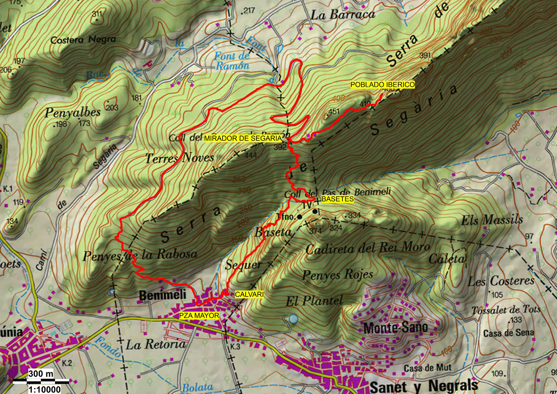 Mapa de la ruta a la Serra de Segària
