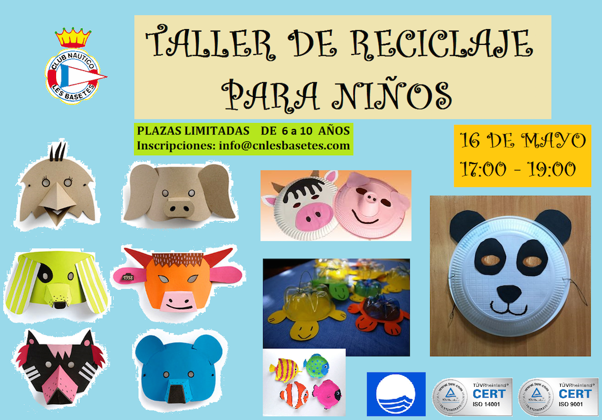 Juntament amb el concurs de pesca infantil, que tindrà lloc aquest dissabte per la vesprada, el Club Nàutic Les Bassetes organitza el 1r Taller de Reciclatge. La inscripció ha de fer-se per correu electrònic a info@cnlesbasetes.com o bé a les oficines del club nàutic de 09.30h a 15.00h.