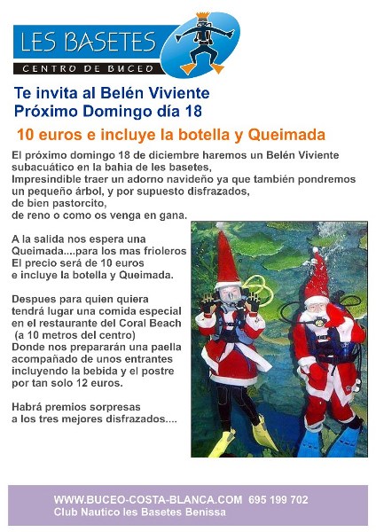 Aquest diumenge 18 de desembre en el Club Nàutic Les Bassetes de Benissa serà l’escenari d’un betlem subaqüàtic que està a càrrec del Centre de busseig Les Bassetes.