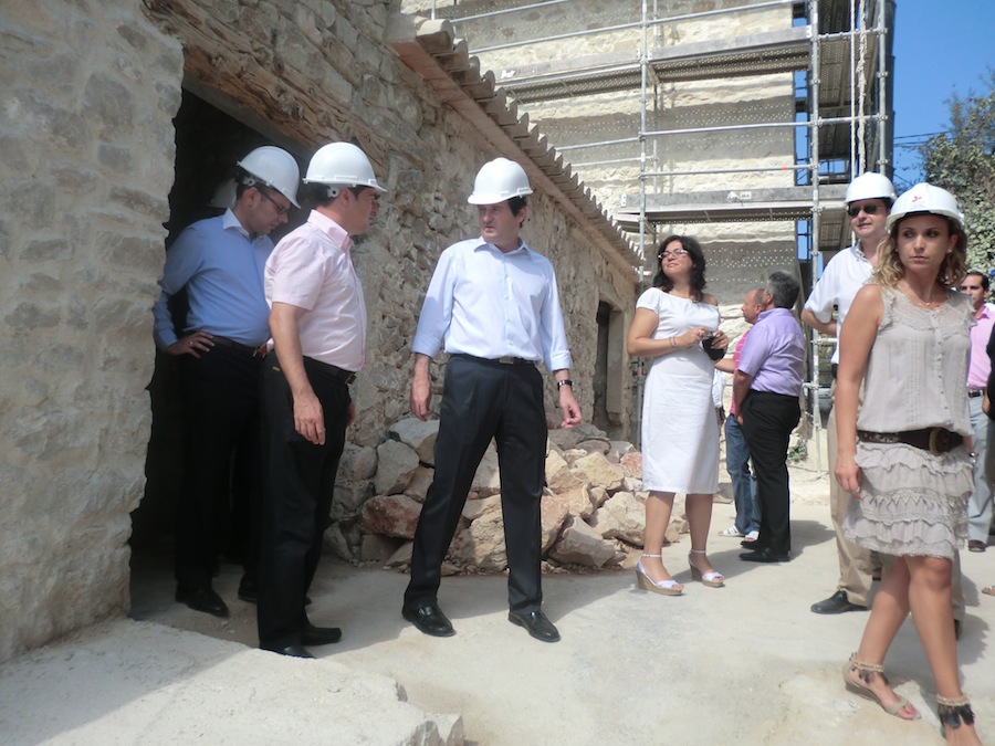 El Conseller d’Educació, Formació i Ocupació, l’Hble. Sr. José Ciscar Bolufer, acompanyat pel batle de Benissa, Juan Bautista Roselló, el Director Territorial d’Ocupació, Ramón Rocamora, diputats, batles de la comarca i membres de la corporació municipal, ha visitat aquest matí les obres de rehabilitació de la Casa del Tros de les Calcides, que s’està duent a terme pels alumnes de l’Escola Taller.