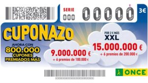 El Cuponazo de l’ONCE ofereix tots els divendres, per tres euros, un premi a les cinc xifres més sèrie de 9 milions d’euros, i sis segons premis de 100.000 euros a sengles extraccions, també amb sèrie. Si s’opta per Cuponazo XXL, per cinc euros, el premi puja a 15 milions i 200.000 euros, respectivament. A més, es poden guanyar 134 premis de 25.000 euros a les 5 xifres del primer premi. Una altra novetat és la creació de 800.000 premis menors més a les 4, 3 o 2 últimes xifres de les 6 extraccions de segona categoria.