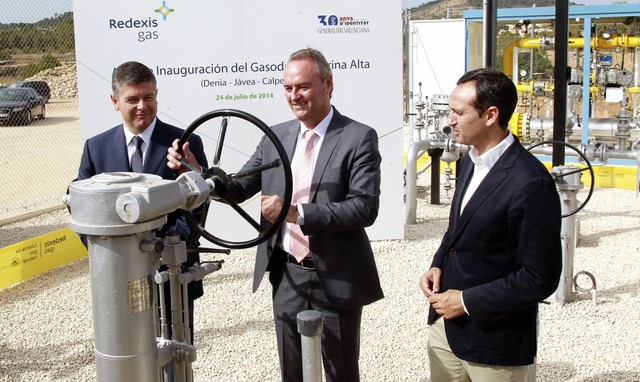 El president de la Generalitat Valenciana, Alberto Fabra, va inaugurar ahir a Calp la segona fase del gasoducte de transport Marina Alta, que queda unit amb la conducció que ix des de Dénia i va a permetre, segons va ressaltar, que “180.000 llars de la Marina Alta (el 90% del total de la població), i un nombre important d’empreses del sector serveis i de la indústria, tinguen accés al gas natural”.