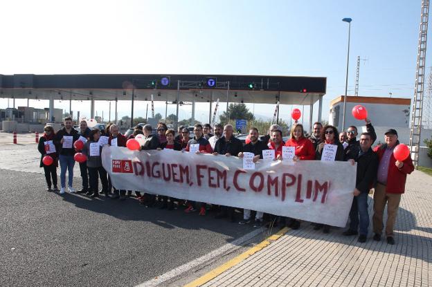El trànsit era bastant fluid, a penes es formaven cues. Alguns usuaris reduïen la velocitat per a veure el que succeïa en l’entrada. Allí es van concentrar els representants del PSPV de la comarca per a reivindicar les “gestions del seu partit per a aconseguir la gratuïtat de l’AP-7”. Amb una enorme pancarta amb el lema ‘Diguem, fem, complim’ els regidors de Dénia, Ondara, Gata de Gorgos, El Verger, Els Poblets i Benissa es van fotografiar junts per a, posteriorment realitzar el recorregut fins al municipi benisser, on es troba la segona de les eixides d’aquest vial a la comarca. Allí van repetir el procés, desplegament de pancarta i foto de rigor.
