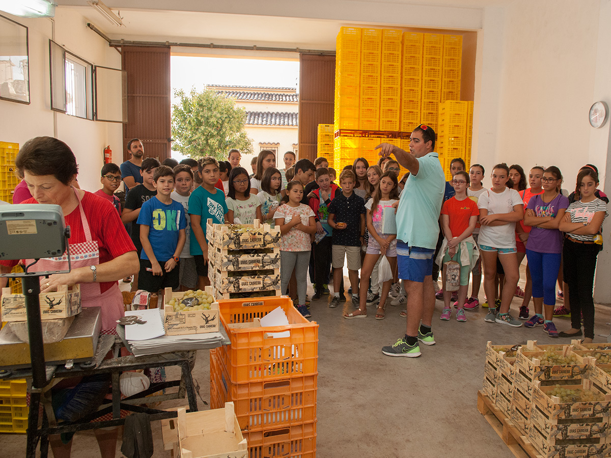 Els alumnes de sisè curs de primària de les dos escoles del municipi, Manuel Bru i Pare Melchor, ha visitat aquesta setmana un magatzem de raïm de Benissa, per a conèixer els detalls de la preparació del raïm moscatell i el seu envasament.