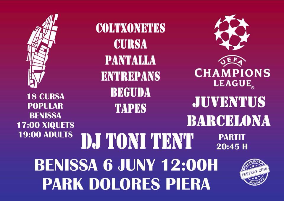 La Comissió de Festes de la Puríssima Xiqueta 2016 de Benissa està ultimant tots els detalls per a poder gaudir aquest dissabte 6 de juny de la Cursa de Benissa i de la Gran final de la Champions League.