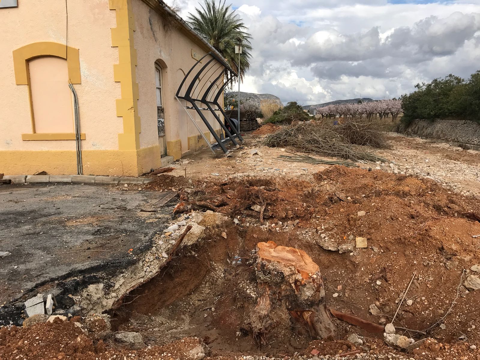 Els plataners que amb la seua verdor protegien els viatgers dels calurosos dies d’estiu a l’estació de tren de Benissa són història. Ferrocarrils de la Generalitat Valenciana, presidida per la consellera socialista Maria José Salvador, ha decidit desfer-se d’uns abres que estaven lligats a l’estació del trenet des de la seua inauguració el 1915.