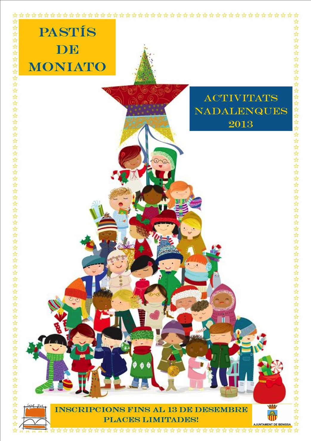Com cada any, amb motiu de les vacances de Nadal, des de la Regidoria de Joventut de l’Ajuntament de Benissa s’han organitzat una sèrie d’activitats dins del programa “Pastís de Moniato” relacionades amb la temàtica del Nadal, dirigides a xiquets i xiquetes majors de 3 anys.