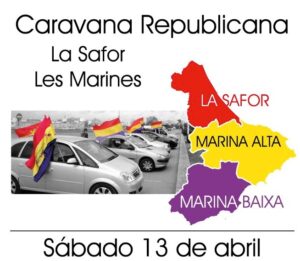 El PCPV La Safor i Les Marines, EUPV La Safor i La Marina Marina Baixa i la Joventut Comunista del País Valencià organitza demà dissabte 13 d’abril, amb motiu del 82é aniversari de la proclamació de la II República, la 2a Caravana Republicana que recorrerà les comarques de La Safor, la Marina Alta i la Marina Baixa.