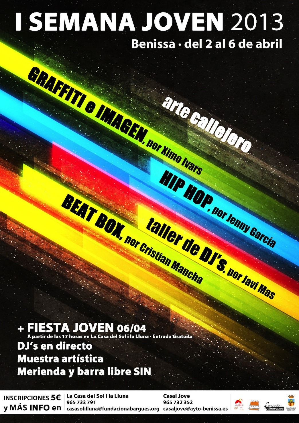 L’objectiu és que els joves passen una vesprada divertida i diferent, on els participants de la I Setmana Jove celebrada a Benissa, demostraran tot l’après en els diferents tallers realitzats. Per tant, hi haurà DJ en directe, mostra artística i demostracions d’Hip-hop i Beat Box, a més de berenar i “barra sense alcohol”.