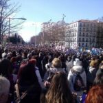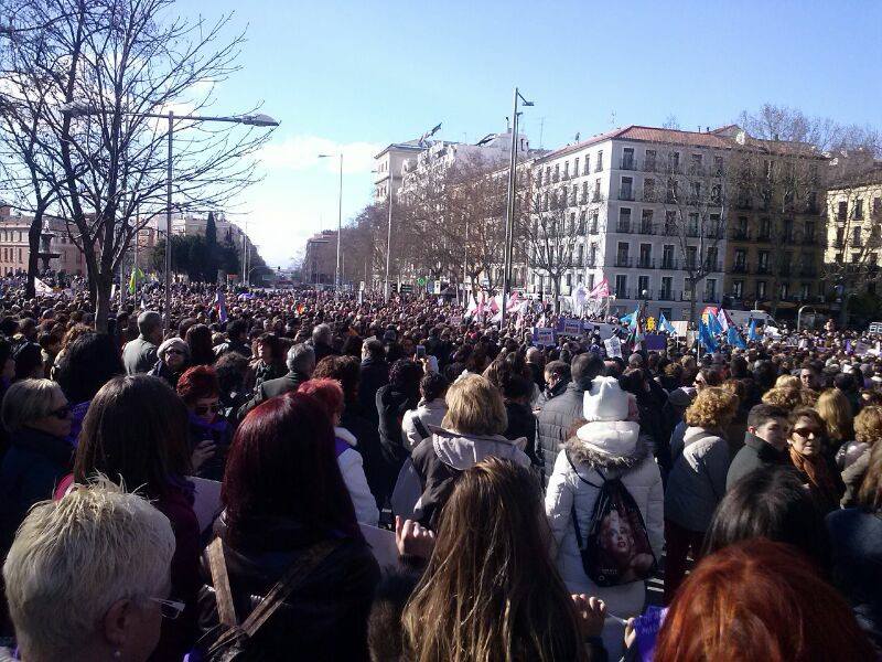 Tot seguit es va iniciar la manifestació multitudinària, que transcorregué des d’Atocha fins a la plaça de Neptú passant pel Ministeri de Sanitat, Servicis Socials i Igualtat. Segons l’organització participaren 100.000 persones; com és costum els números de les fonts oficials eren molt menors.