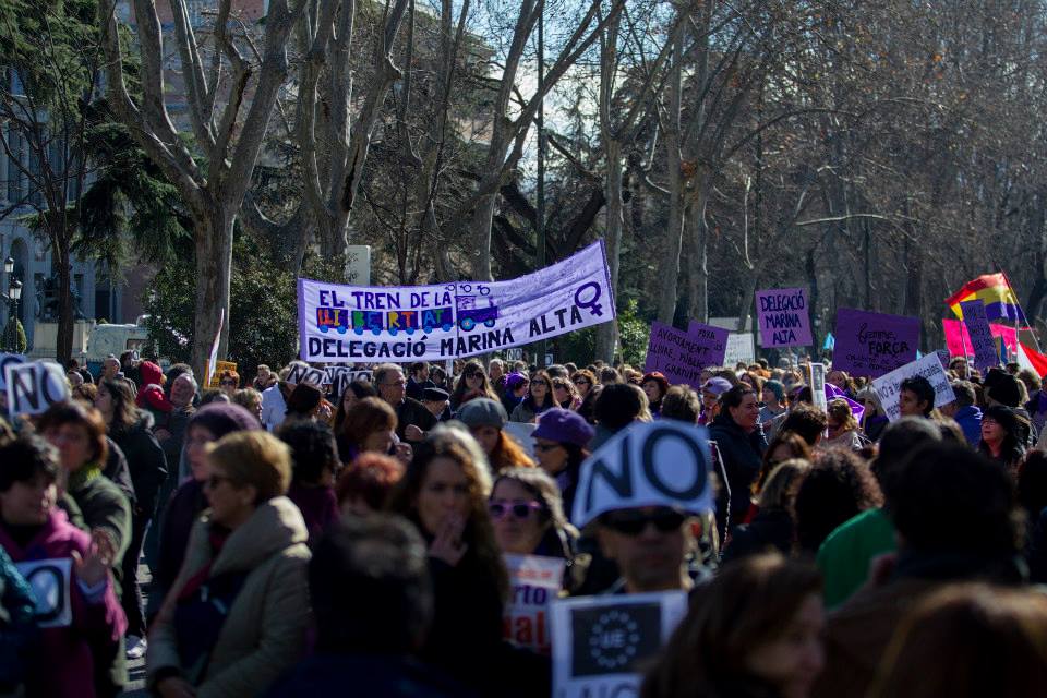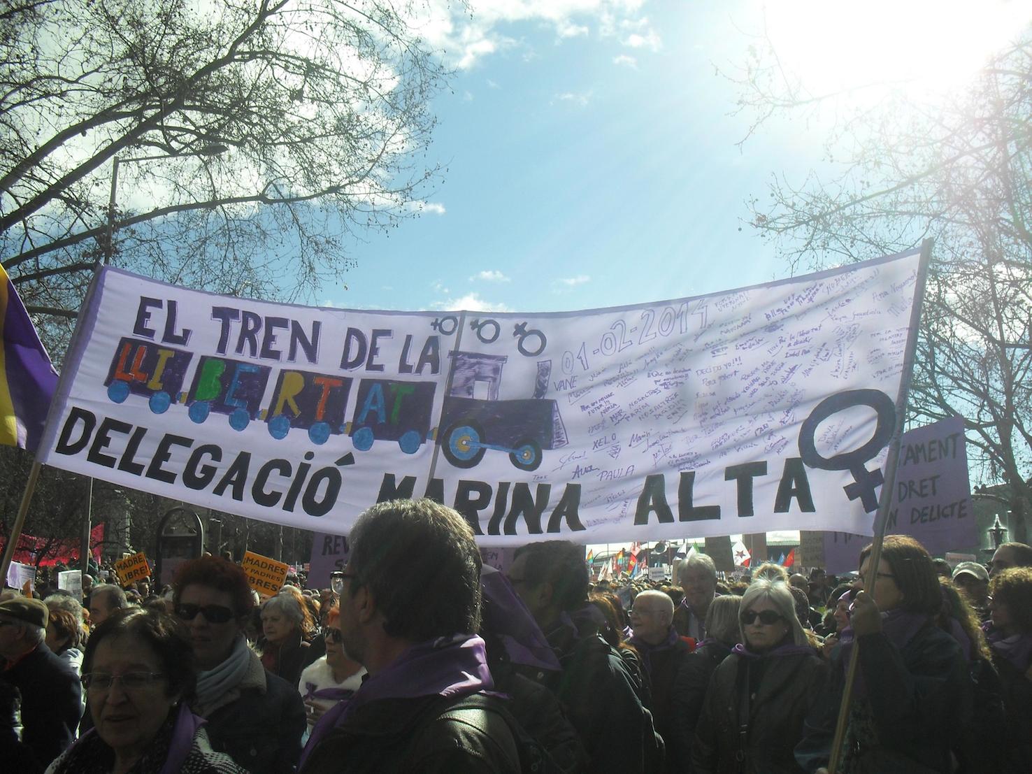 La gran marea violeta desprenia energia, força, color, al so de danses, batucades, cançons reivindicatives, frases de demanda, i s’adornava amb pancartes, cartells, disfresses, ninots al·lusius… Possiblement haja sigut una de les manifestacions més vitalistes, lluminoses i actives de les nombroses que s’han realitzat d’ençà que començà la crisi i els atacs als drets de ciutadanes i ciutadans.