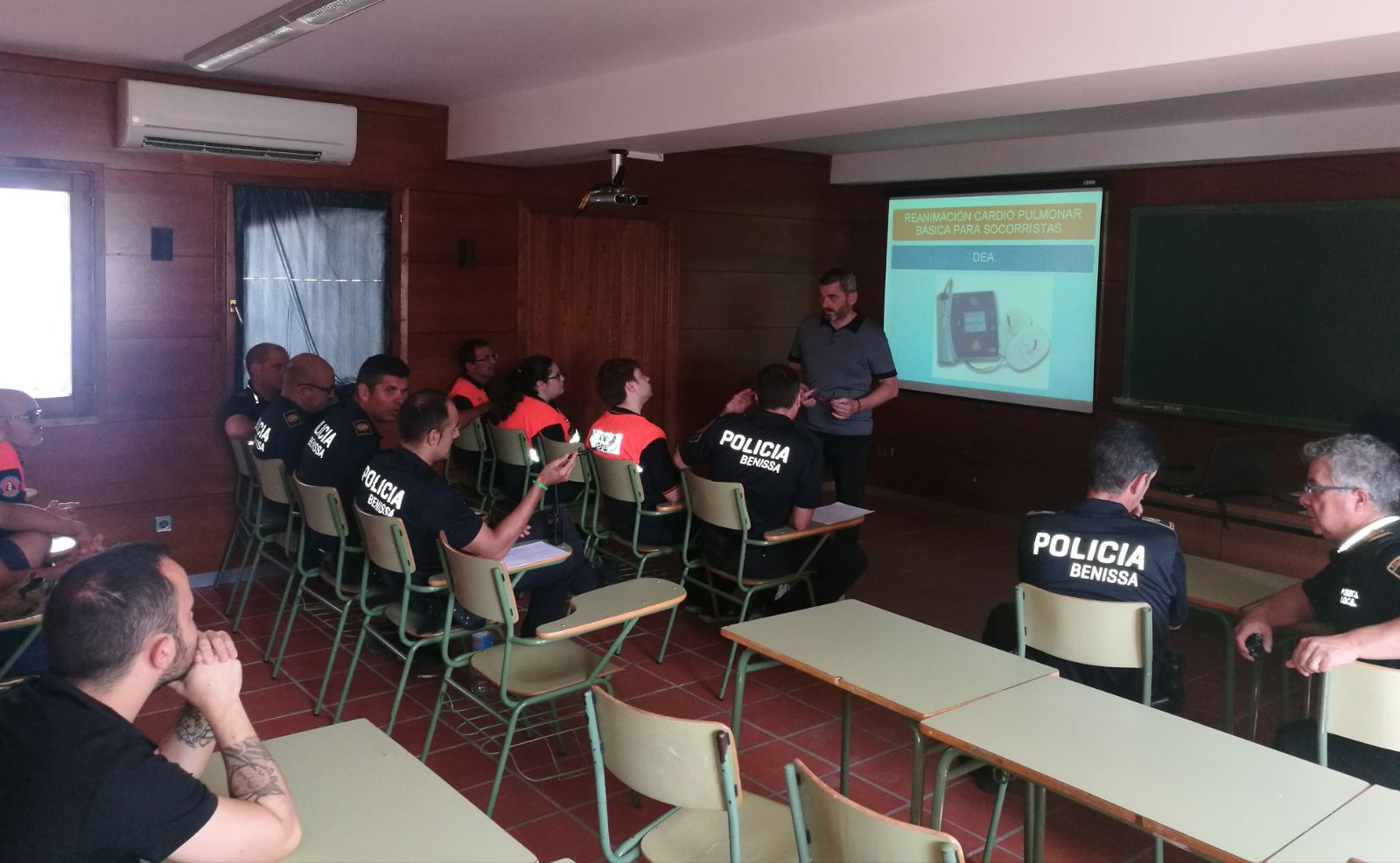 Dissabte passat dia 7 va tindre lloc a la Casa del Mar, prop de la Platja de la Fustera, una xarrada formativa sobre primers auxilis, reanimació cardiopulmonar i ús del DESA. A aquest acte, de caràcter teòric i pràctic, van assistir membres de Policia Local de Benissa, Protecció Civil, de Salvament en la Zona Costanera i personal del departament de Medi Ambient de l’Ajuntament, en una xarrada impartida pel Dr. Juan Illueca.