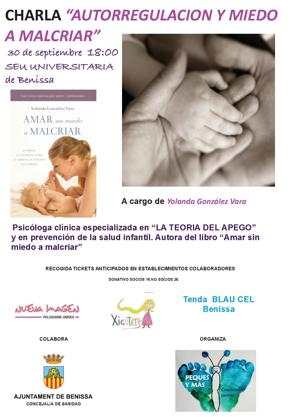 L’Associació “Peques i Más” de Benissa, en col·laboració amb la Regidoria de Sanitat de l’Ajuntament de Benissa, ha organitzat un xerrada a càrrec de la psicòloga Yolanda González, amb el títol “Autoregulació i por a malcriar”.