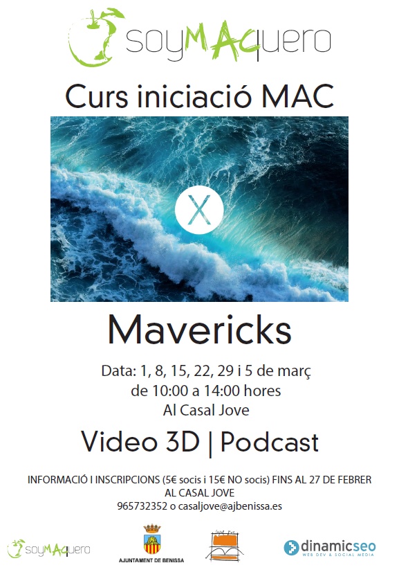 Els inscrits a aquest curs, de la mà d’experts, tindran una primera presa de contacte amb la versió Mavericks, nou sistema operatiu d’Apple, i totes les novetats de iOS 7, aprendran a preparar un podcast i a manejar programes de muntatge de vídeo i àudio per a aquest sistema. A més s’ensenyaran a fer conversions de vídeo entre formats i a 3D, creació de fil musical i com compartir-ho entre equips,…