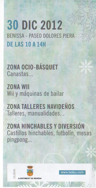 Benissa acollirà una activitat lúdica i educativa organitzada per la Diputació d’Alacant en col·laboració amb la Regidoria de Joventut de l’Ajuntament, sota el títol “Nadal Time”. Tindrà lloc el diumenge 30 de desembre al passeig Dolors Piera des de les 10.00 fins les 14.00.