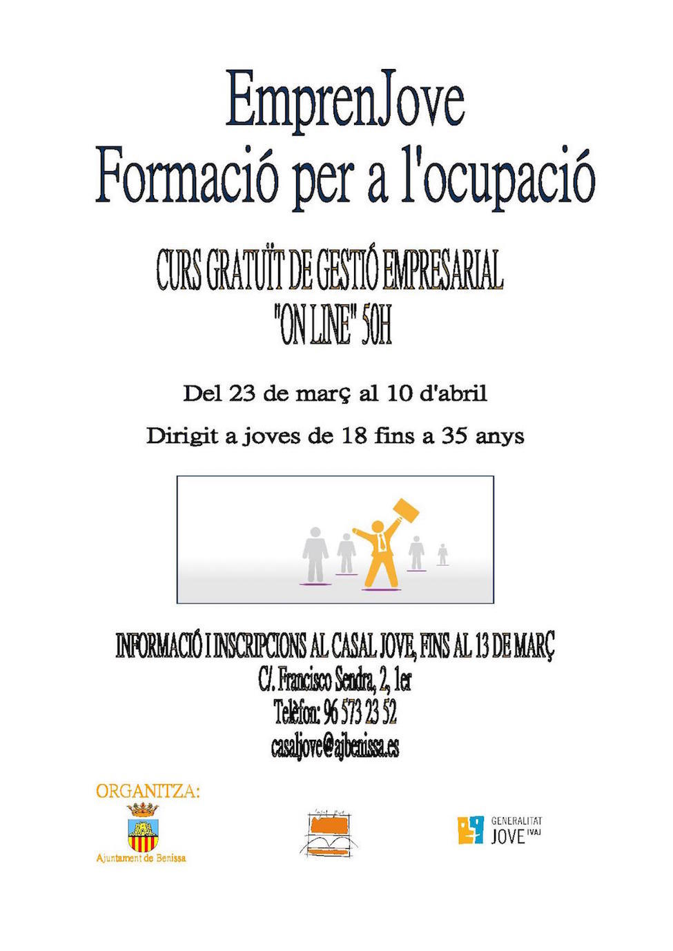 La Regidoria de Joventut de l’Ajuntament de Benissa, juntament amb Emprenjove de l’IVAJ.GVA JOVE, llancen de nou un curs gratuït de gestió empresarial online per a tots els joves que tinguen entre 18 i 35 anys.