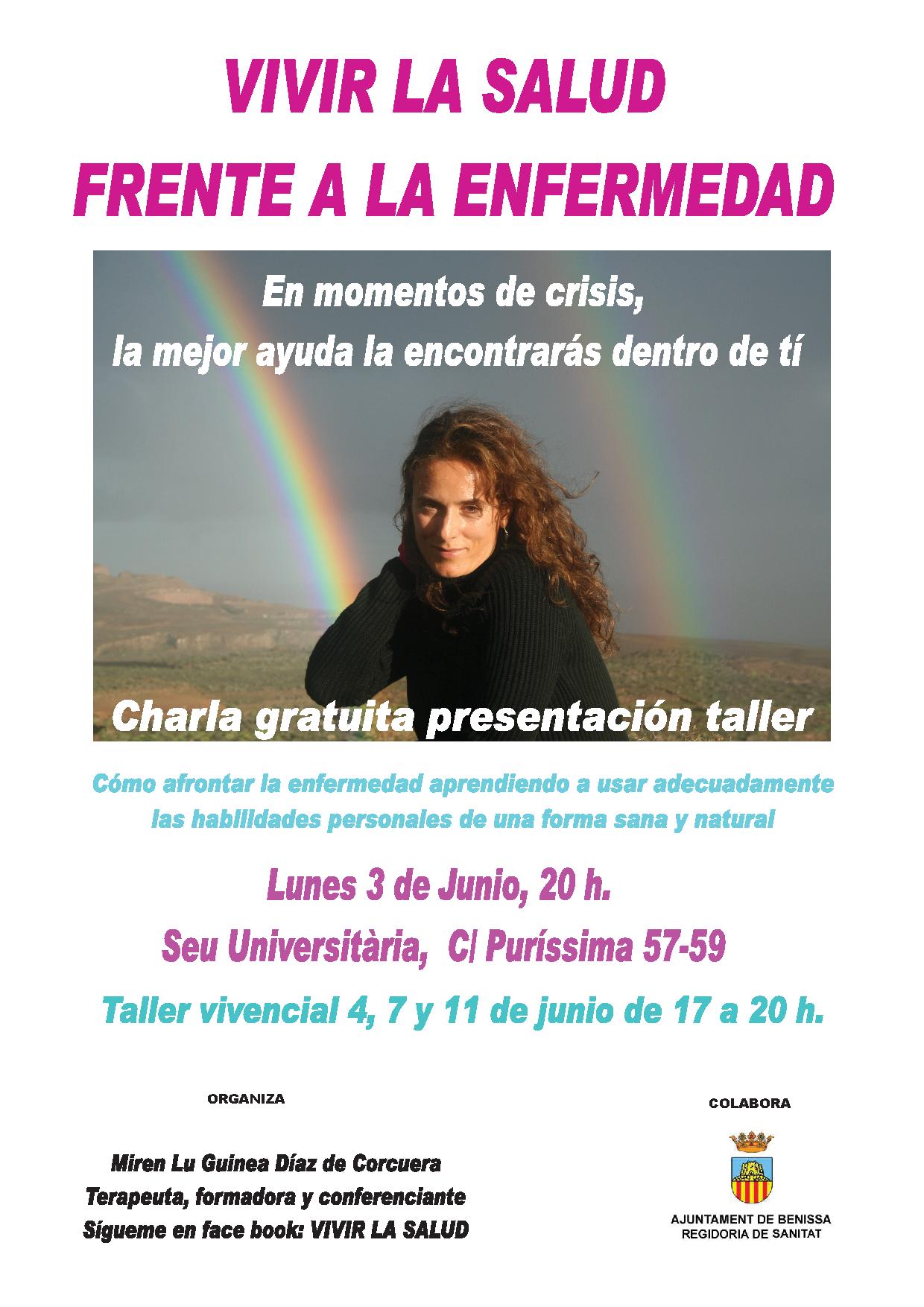 La Regidoria de Sanitat de l’Ajuntament de Benissa ha organitzat la xerrada “Viure la salut front a la malaltia”, que tindrà lloc dilluns que ve, 3 de juny, a les 20.00h a la Seu Universitària.