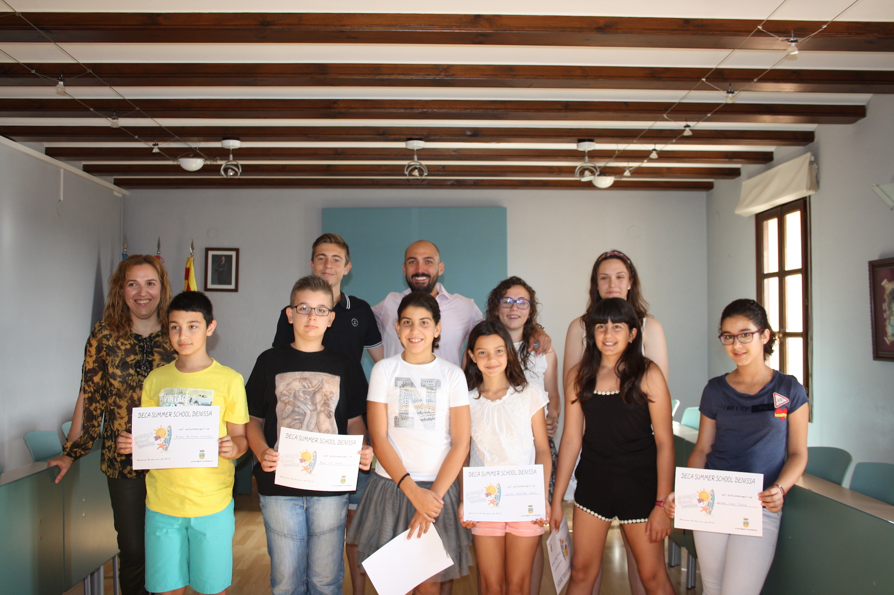La regidora d’Educació, Pepa Martí, i el director de la Summer School, Pedro Barberá, han reunit als alumnes afortunats per a lliurar-los els diplomes corresponents.