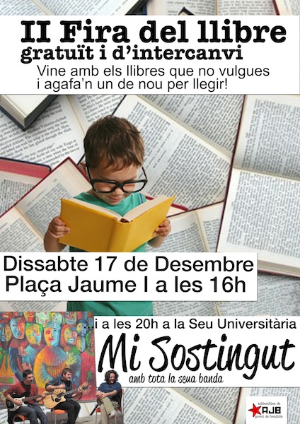 El pròxim dissabte 17 l’Assemblea de Joves de Benissa celebrarà la 2a Fira del Llibre d’intercanvi i gratuït. Enguany s’emmarca dins del Mercat de Nadal que ha organitzat l’Ajuntament de Benissa a la Glorieta Dolors Piera.