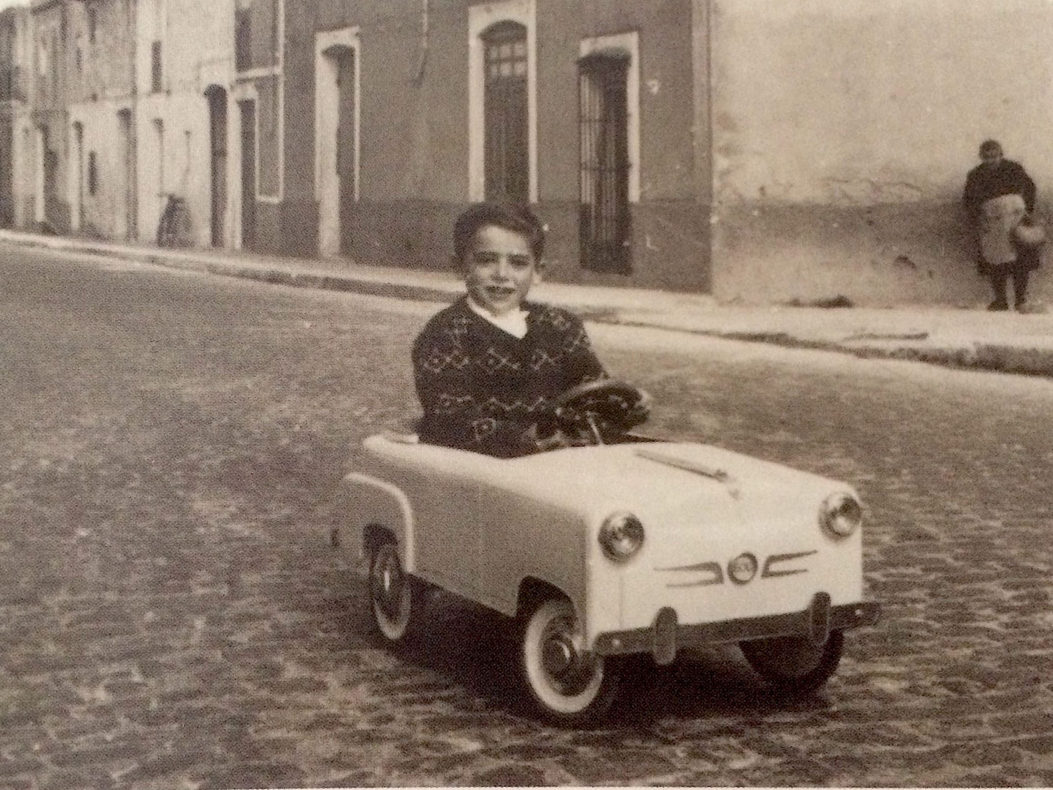 El xiquet Juan Diego Porres a la carretera davant l'entrada del carrer Grao, maig de 1959