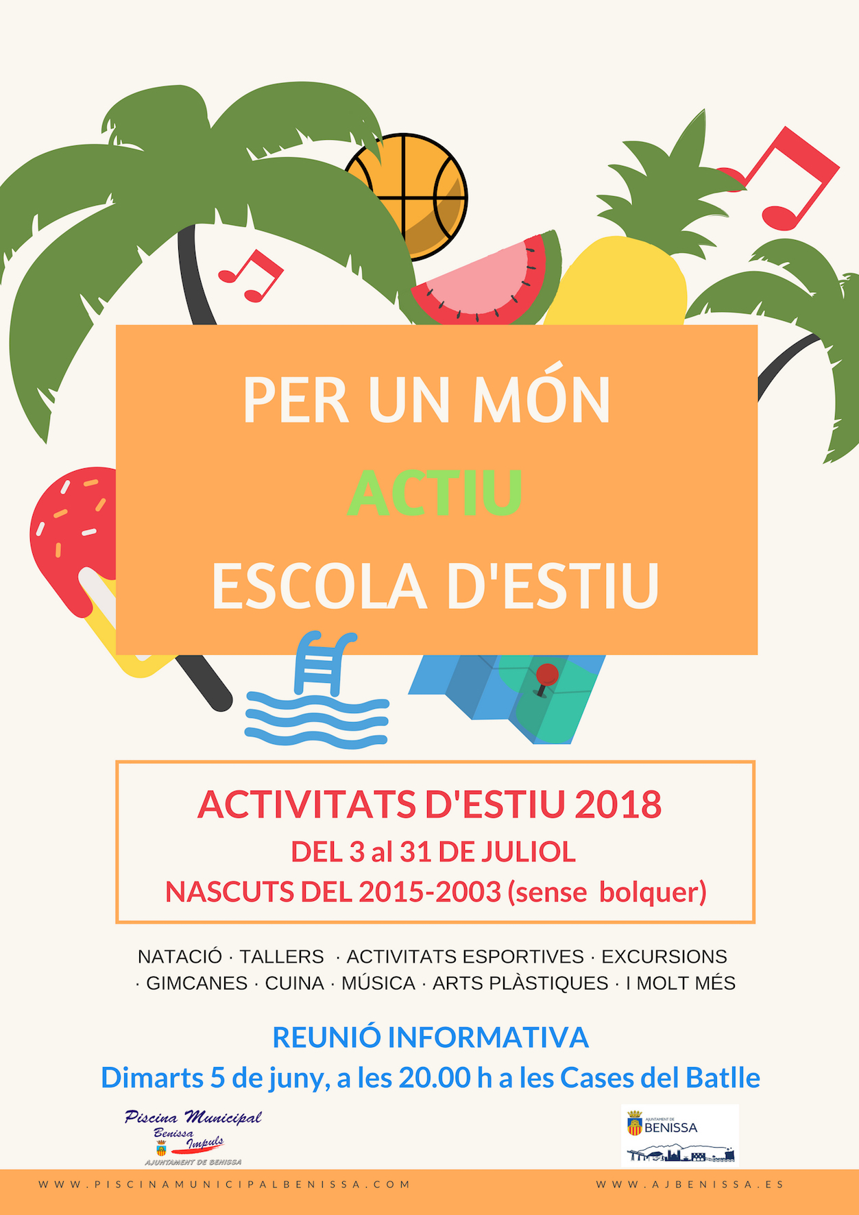 L’Escola d’Estiu, que es celebrarà del 3 a 31 de Juliol, desenvoluparà activitats que comprenen natació, activitats esportives, excursions, gimcanes, cuina o música, entre altres accions.