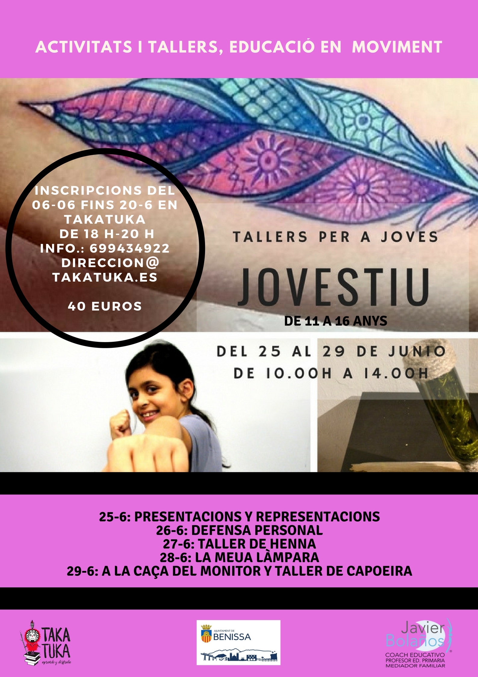 En aquest mateix sentit, és important assenyalar que en el mes de juny van a desenvolupar-se per a joves de Benissa amb edats compreses entre els 11 i els 16 anys, les activitats previstes dins del Jovestiu, una oferta de tallers en la qual els participants podran adquirir coneixements sobre defensa personal, interpretació o ball, entre altres temes.
