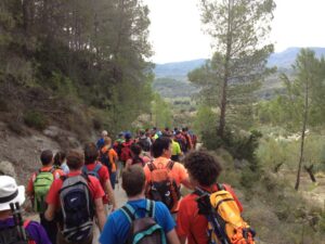 La tercera etapa, la més curta, va pujar a l’Alt de la Caseta de la Neu de la serra d’Almudaina, descens fins al Riu Frainós amb pas obligat per l’om mil·lenari de Millena i el Salt del Molí. Arribada a Benilloba amb festa final.