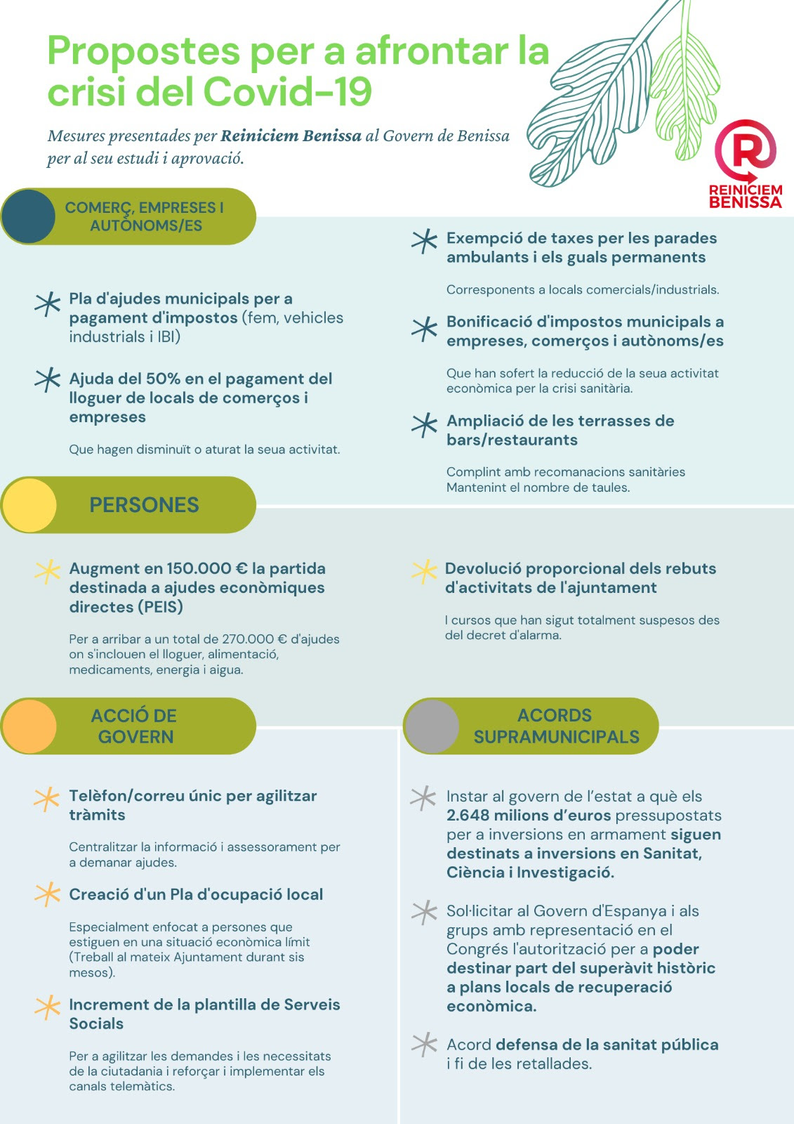 Per altra banda, Reiniciem Benissa vol aprofitar també per a valorar l’actuació del govern municipal de PP i CIBE, respecte a l’actual crisi sanitària i social: