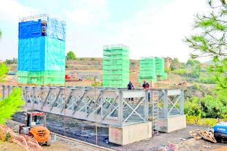 El viaducte centenari del quisi, l’obra d’enginyeria més emblemàtica del «trenet» de la Marina, s’està restaurant «in situ» i a peces. S’ha desmuntat com un mecano. L’estructura que sosté les vies es repara a terra. Els operaris han substituït els cargols, reblons i angles que estaven corroïts pel rovell. Han aplicat dos capes de pintura antiòxid. Mentre, els pilars de ferro estan embolicats en una complexa bastida. Rehabilitar aquest històric pont de ferro té una certa complicació. No s’ha portat ni una peça al taller. Tot es fa als vessants del barranc.