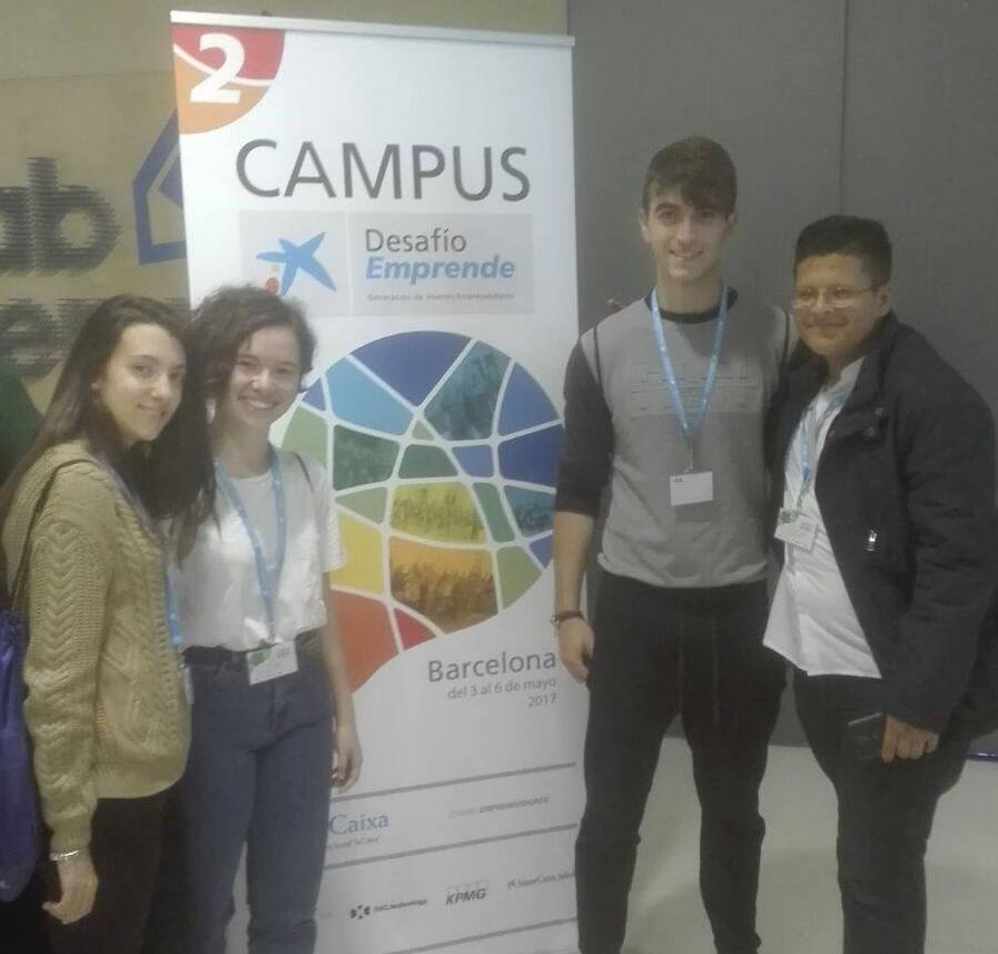 Els alumnes de l’IES Josep Iborra, Jeev Jaisee, Alberto Martí, Silvia Llinares i Maria Reus, de l’assignatura Fonaments d’Administració d’Empreses de 2n de Batxillerat, es troben aquests dies a Barcelona competint a la final del Campus “Desafío Emprende” de l’Obra Social la Caixa.