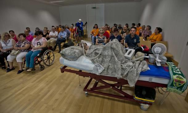 El demandant, Alfredo Sánchez Sansano, de 29 anys i natural de Crevillent, va assistir ahir, en aquest llit, a la segona i última sessió del judici celebrat a la Ciutat de la Justícia d’Elx, segons informa Efe. El jove va ser desplaçat en una furgoneta adaptada ja que pateix una distròfia muscular que l’obliga a desplaçar-se en un llit mecànic que, a més, porta una màquina respiratòria.