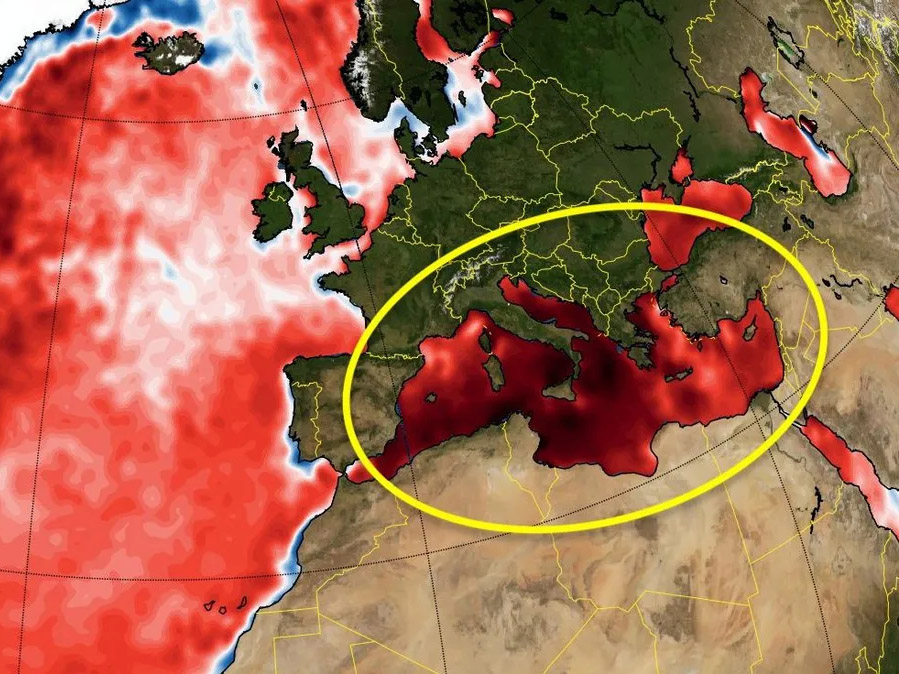 L’escalfament del Mediterrani és un dels elements claus del fenomen de calor extrema que afecta la regió, sobretot a Itàlia, Algèria i Grècia, que estan patint incendis molt difícils de contindre per culpa de les elevades temperatures i els vents.