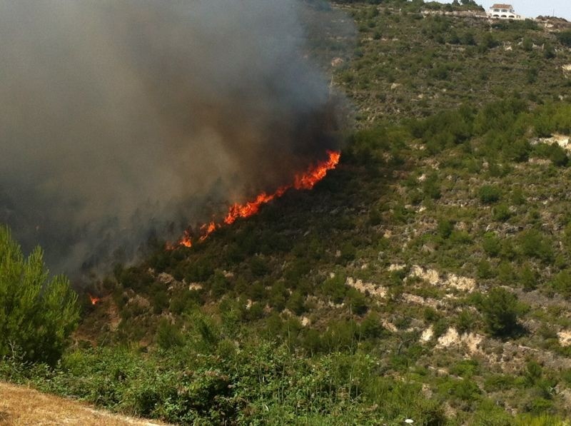 El foc s’ha iniciat cap a les 11.35h d’aquest divendres per causes encara desconegudes a la partida Empedrola, si bé el vent ha propagat el foc a través d’un barranc fins a arribar al terme municipal de Benissa.