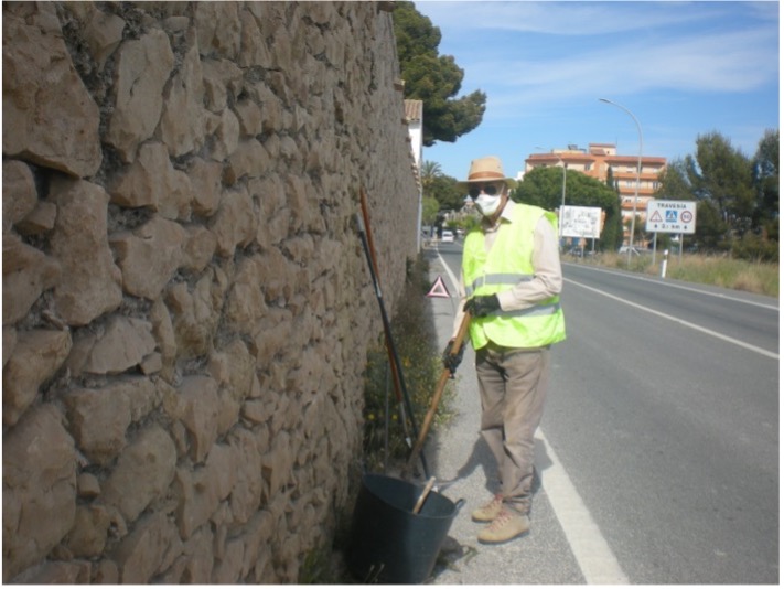 En existir entre els habitants d’aquella part del poble un sentiment de declarar-se independents del municipi s’han arreplegat firmes per establir la fita del terme a casa dels Feliu. Com de moment encara no es tenen els servicis de neteja s’ha procedit a organitzar-se en tandes a fi de deixar aquella part del poble neta i polida. Així podem veure en la fotografia que il·lustra aquest article a un digne ciutadà d’aquell veïnat armat d’aixada i resta d’utensilis, perfectament uniformat i amb les mesures de seguretat pròpies per treballar en camí real. El munt de brutícia, com de moment encara està pagant contribucions a l’ajuntament, s’ha deixat perfectament ensacat i ordenat a vora del camí real. Està just al cartell on està dibuixada una palmera i els indicatius de platges, museus, llocs emblemàtics als que tan sols falta afegir el lloc on s’han d’abocar eixes deixalles, situació geogràfica que no ve descrita en els rebuts municipals de l’IBI i altres contribucions que religiosament paguen els veïns d’aquella “defora” tan deixada i oblidada inclòs en temps de propaganda electoral. Ara que ben mirada la cosa les bosses grogues no desdiuen en res d’aquella bruta i desolada entrada de la Benissa. Formen part del paisatge.