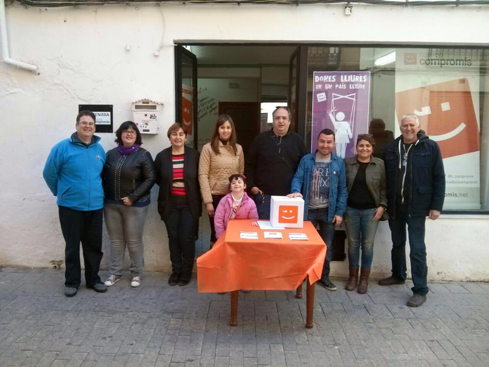 A més, a partir de la pròxima setmana començaran a reunir-se amb les diferents associacions del poble de tots els àmbits (veïnals, d’empresaris i comerciants, turístiques, esportives, musicals, humanitàries, ecologistes, festeres, etc.) i amb professionals i experts de diferents matèries per tal que els puguen orientar i dir que és allò que ells inclourien al programa electoral de Compromís. A més, també es pot participar entrant a la seua pàgina web http://www.compromisperbenissa.com per mig de la campanya, Participa!, per la qual la ciutadania pot presentar propostes al Programa Electoral de Compromís per mig d’aquesta ferramenta de participació que consta de diversos apartats. En el primer, qualsevol ciutadà pot enviar propostes per al programa electoral de la coalició a les Corts, que com ja és conegut encapçala la diputada Mònica Oltra com a candidata a la Presidència de la Generalitat.