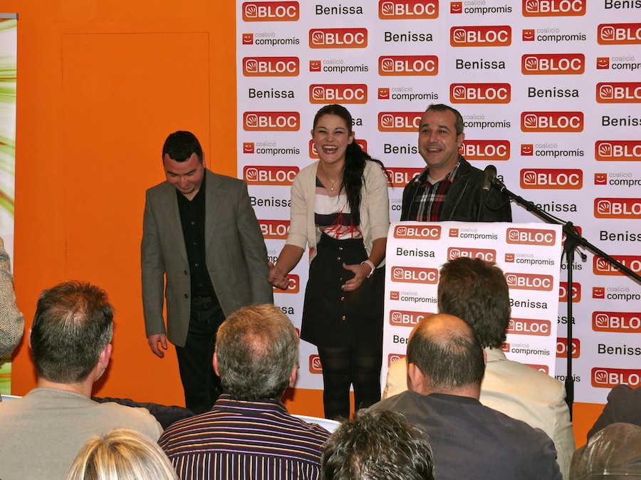 També, moltes gràcies als companys del BLOC de la comarca que han vingut hui, alcaldes, regidors i militants i com no, a les meues companyes i companys del BLOC de Benissa als quals els dec tant i amb qui tant confie, gràcies per estar ahí, amb mi SEMPRE. I gràcies clar, a tots vosaltres, benissers i benisseres per acompanyar-nos en una nit com la de hui, molt especial per a tots aquells que formem aquest projecte polític que és el BLOC de Benissa i evidentment molt especial per a mi. Un projecte polític de poble que esperem i volem, siga també el vostre, des d’ara, des de hui mateix, i un projecte i un compromís que no volem que acabe el pròxim 22 de maig, dia que evidentment esperem que ens doneu la vostra confiança, un projecte que volem que no tinga final.